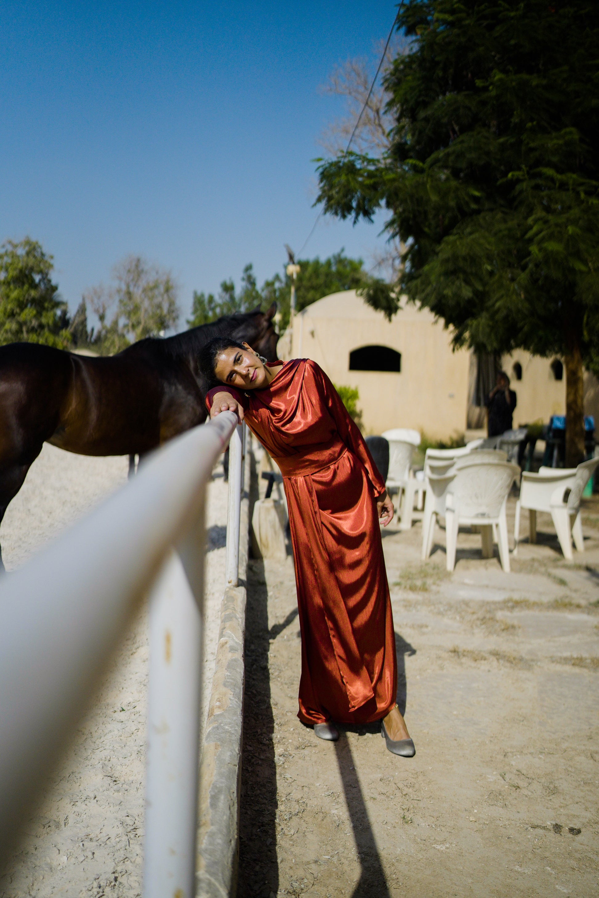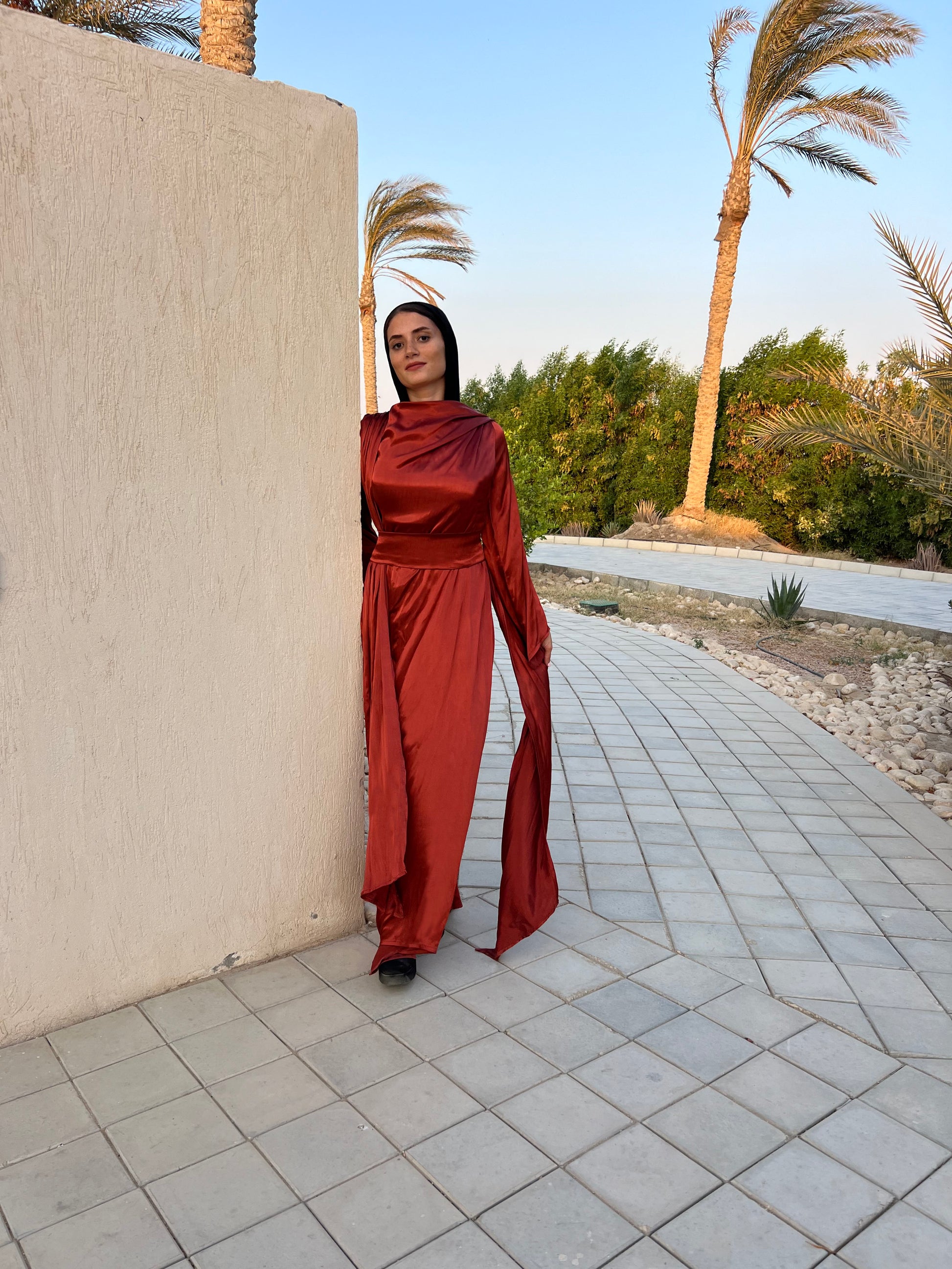 This elegant garment, Dress in Grace - Orange brick, features a flowing design that is perfect for any special occasion. It comes with an adjustable belt, ensuring a seamlessly flawless look.